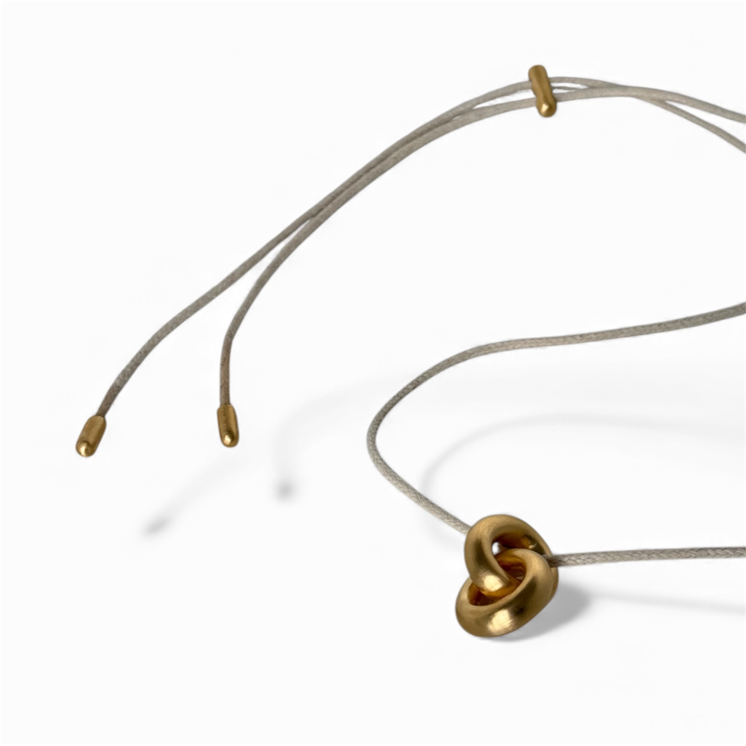 De hanger is gemaakt van gerecycled messing met een 18 karaat goudlaag en afgewerkt met een satijnachtige polish. Daardoor krijgt het oppervlak een warme, matte glans die luxe uitstraalt zonder opzichtig te zijn. Bovendien sluit het gebruik van gerecyclede materialen perfect aan bij een bewuste, eigentijdse levensstijl. Daarom is deze hanger niet alleen mooi om te dragen, maar ook een doordachte keuze. Het minimalistische koord van natuurlijk leer met eveneens een vergulde matte sluiting is verstelbaar.