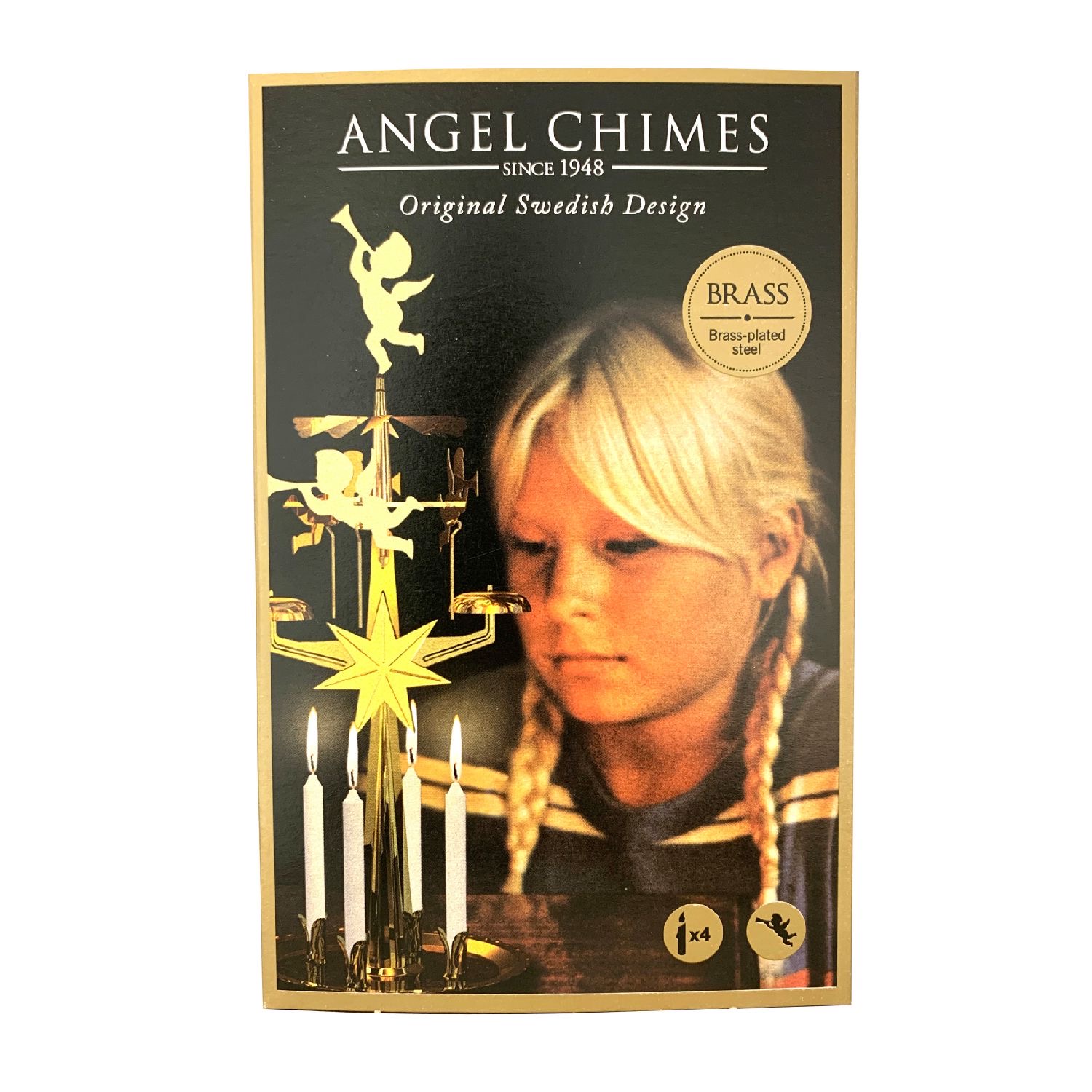 Ken je deze nog? De originele zweedse uitvoering in brass (goud). Het bijzondere is dat er aan dit ontwerp sinds 1948 niets veranderd is. Wanneer je de kaarsjes aansteekt, draaien in dit geval de engelen rond en tingelen vrolijk. In het doosje vindt je een bouwpakket en duidelijke beschrijving om hem in elkaar te zetten. Incl. 4 witte kaarsjes.