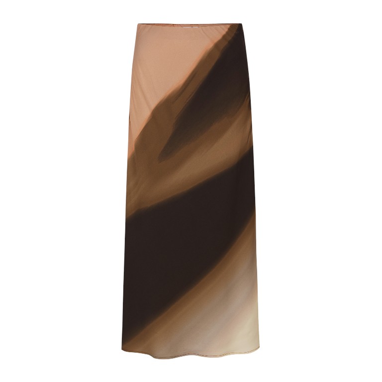 De Cassandra Midi Skirt Sunrise Print van Soft Rebels is een stijlvolle dames midi rok met een warme en opvallende uitstraling. De Sunrise print combineert tinten roze met licht- en donkerbruin, wat zorgt voor een speels maar elegant geheel. De midi lengte en soepele stof geven de rok een vrouwelijk silhouet en comfortabel draaggevoel.