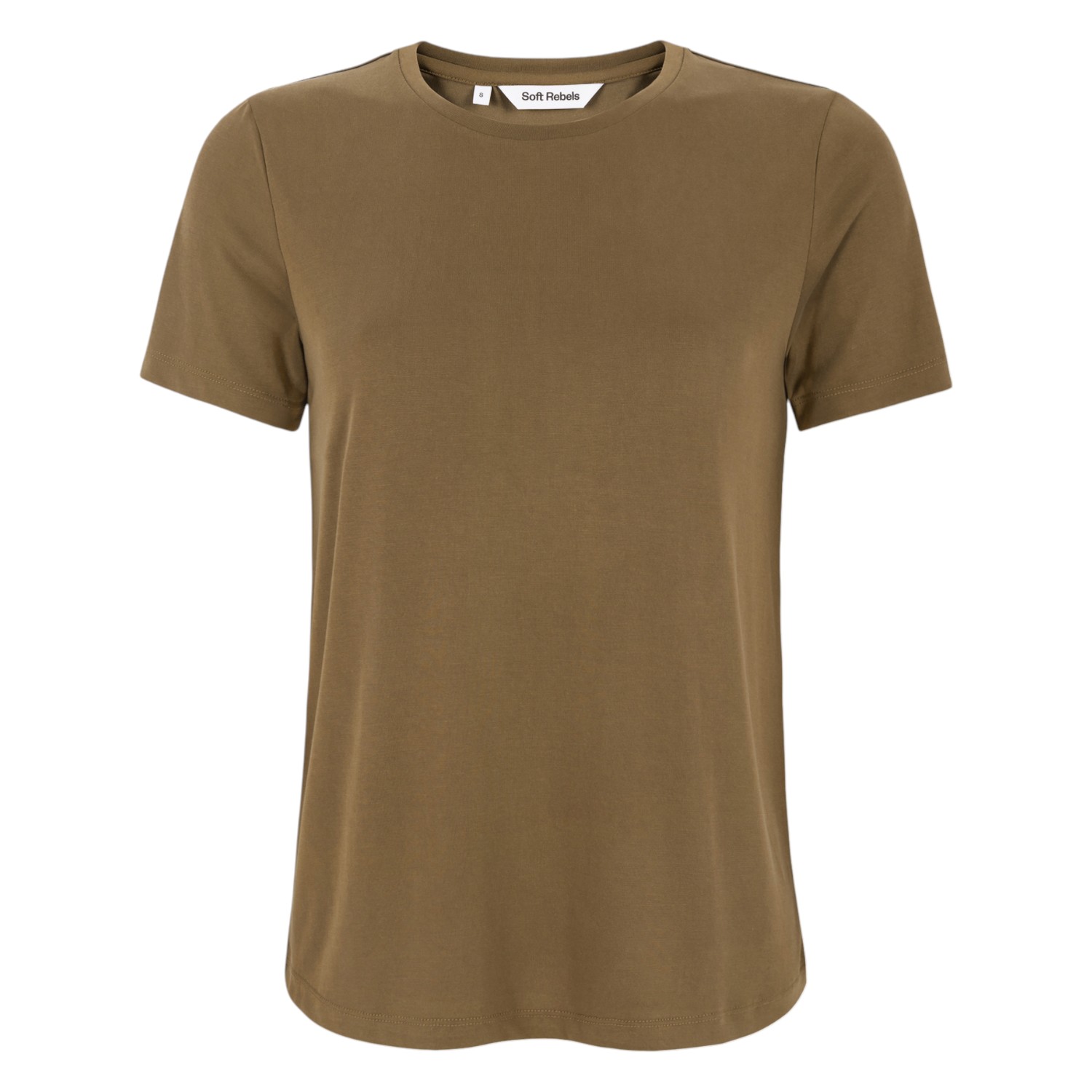 De Ella T-shirt Sepia van Soft Rebels is een stijlvolle dames T-shirt met een zachte, vrouwelijke uitstraling. De Sepia tint, een bruine kleur, geeft dit shirt een rustige en moderne look. Dankzij de comfortabele stof en prettige pasvorm is dit T-shirt een fijn item voor dagelijks gebruik.