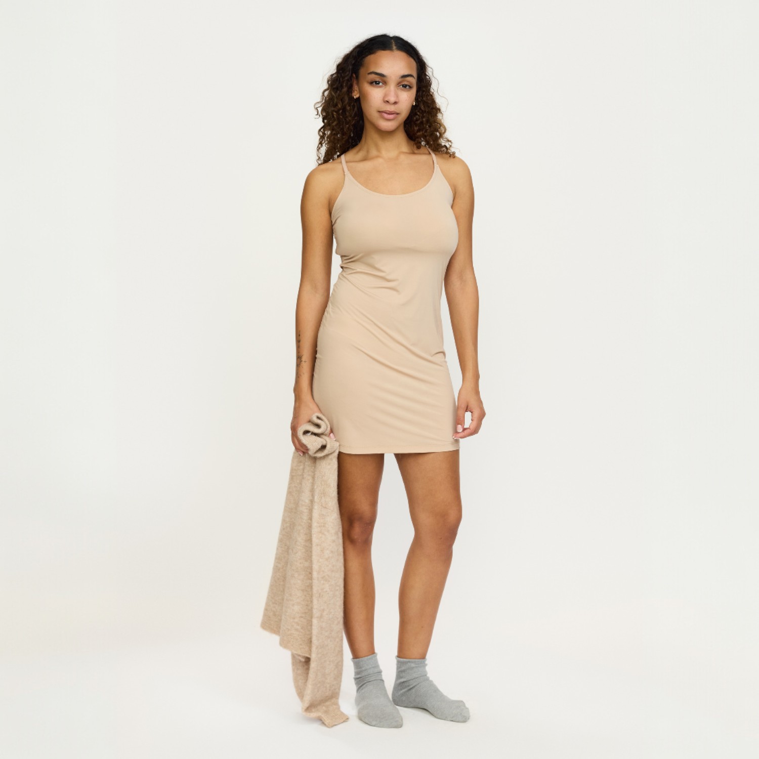 De Elyse Strap Dress is perfect voor warme dagen en laat zich eenvoudig stylen voor verschillende gelegenheden. Draag de jurk met sandalen voor een casual zomerse look of combineer met een vest of blazer voor een meer geklede uitstraling. De neutrale kleur maakt deze jurk veelzijdig en makkelijk te combineren met andere tinten en accessoires.