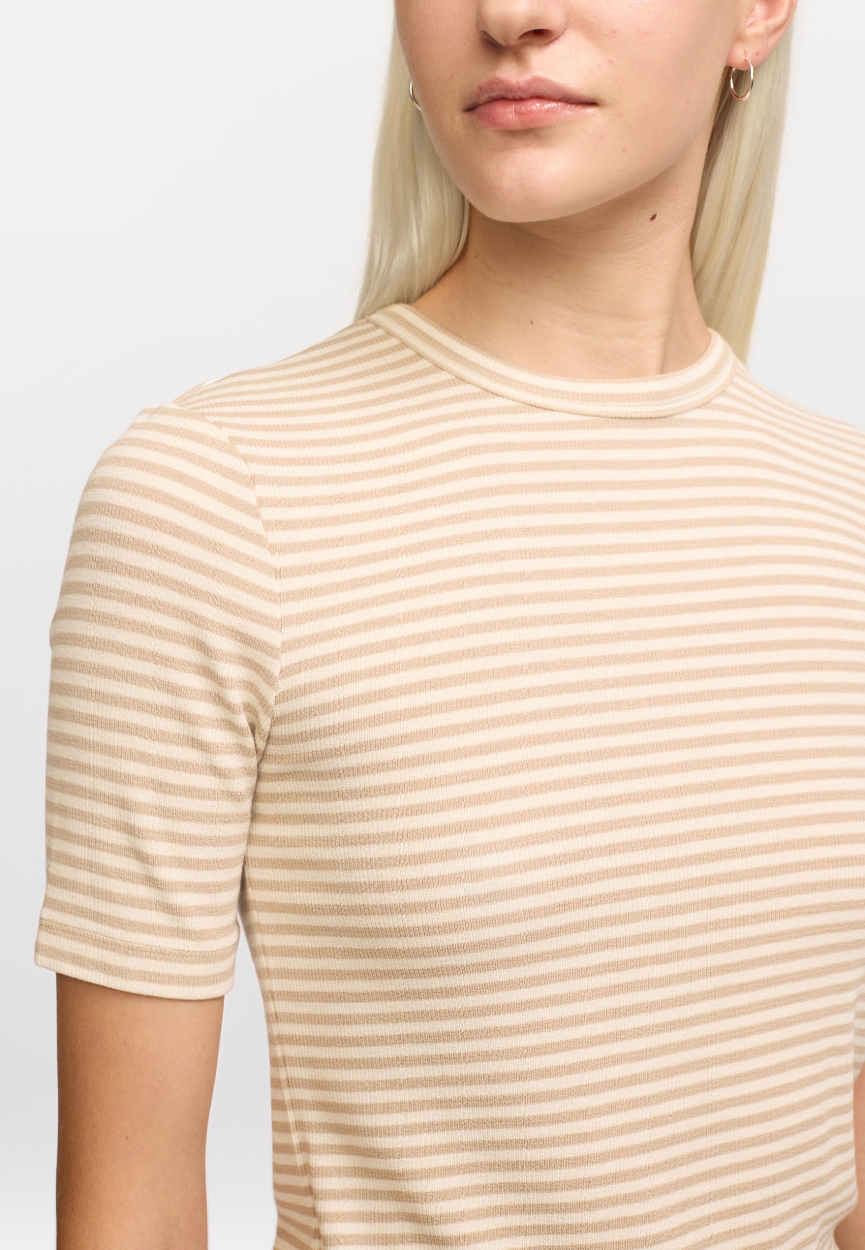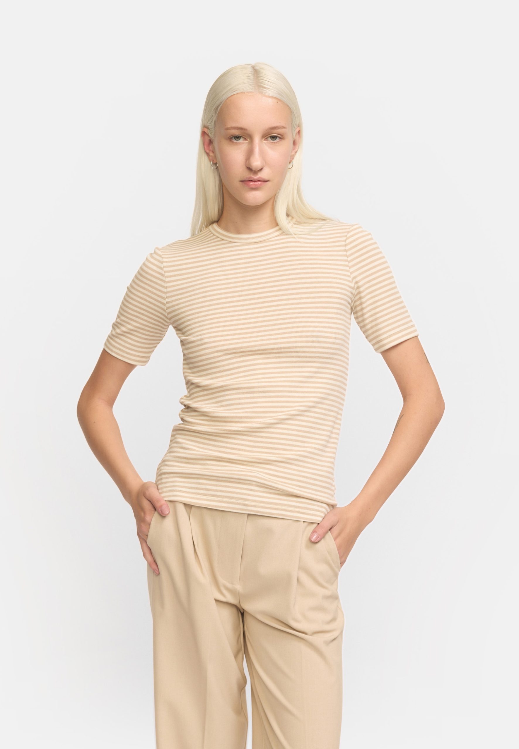 De Fenja Stripe SS Top in de kleur Feather Grey, van het label Soft Rebels. De slanke pasvorm zorgt voor een flatterend silhouet, terwijl de zachte stof je een heerlijk draagcomfort biedt. Deze dunne trui heeft een leuk patroon in een kleur die goed te combineren is.