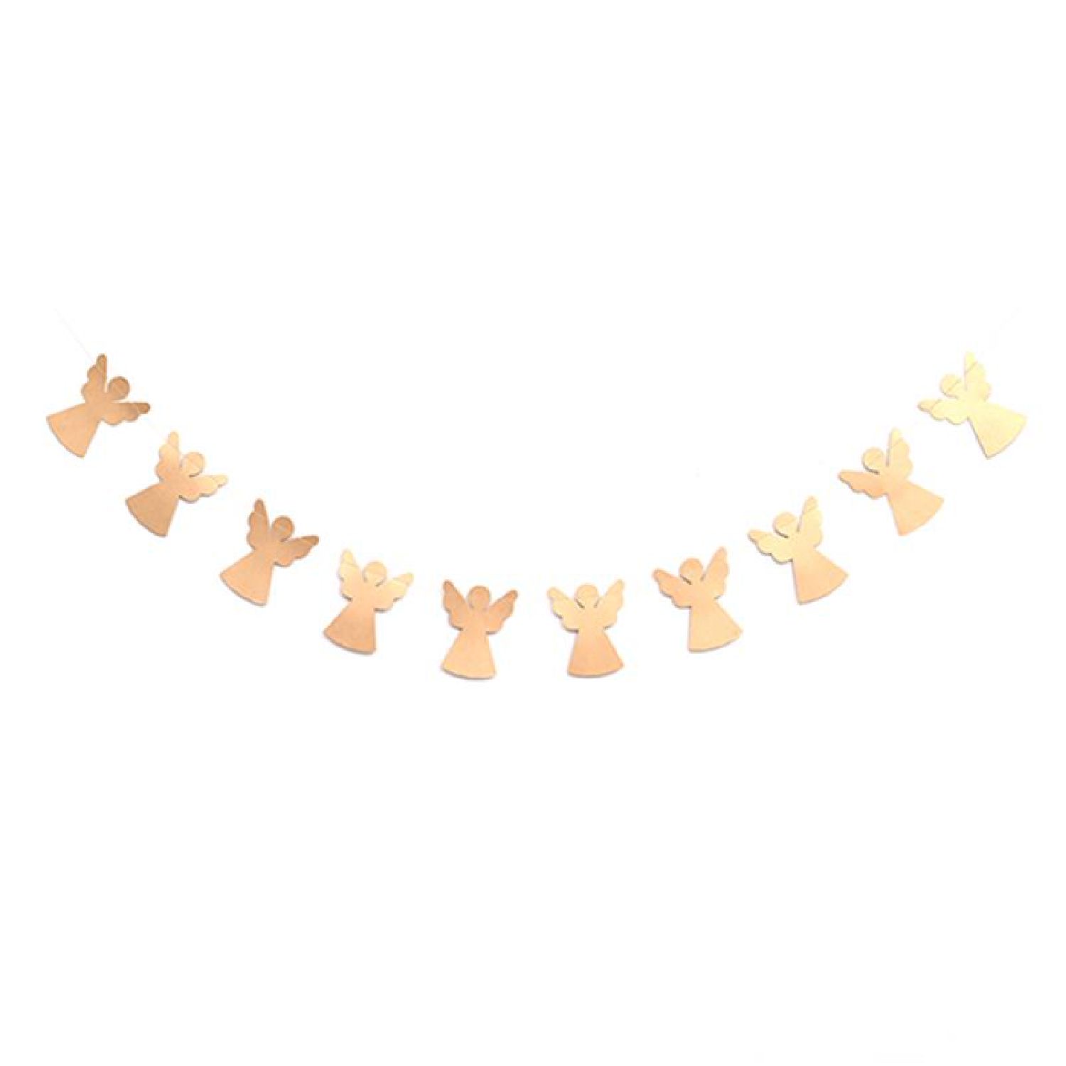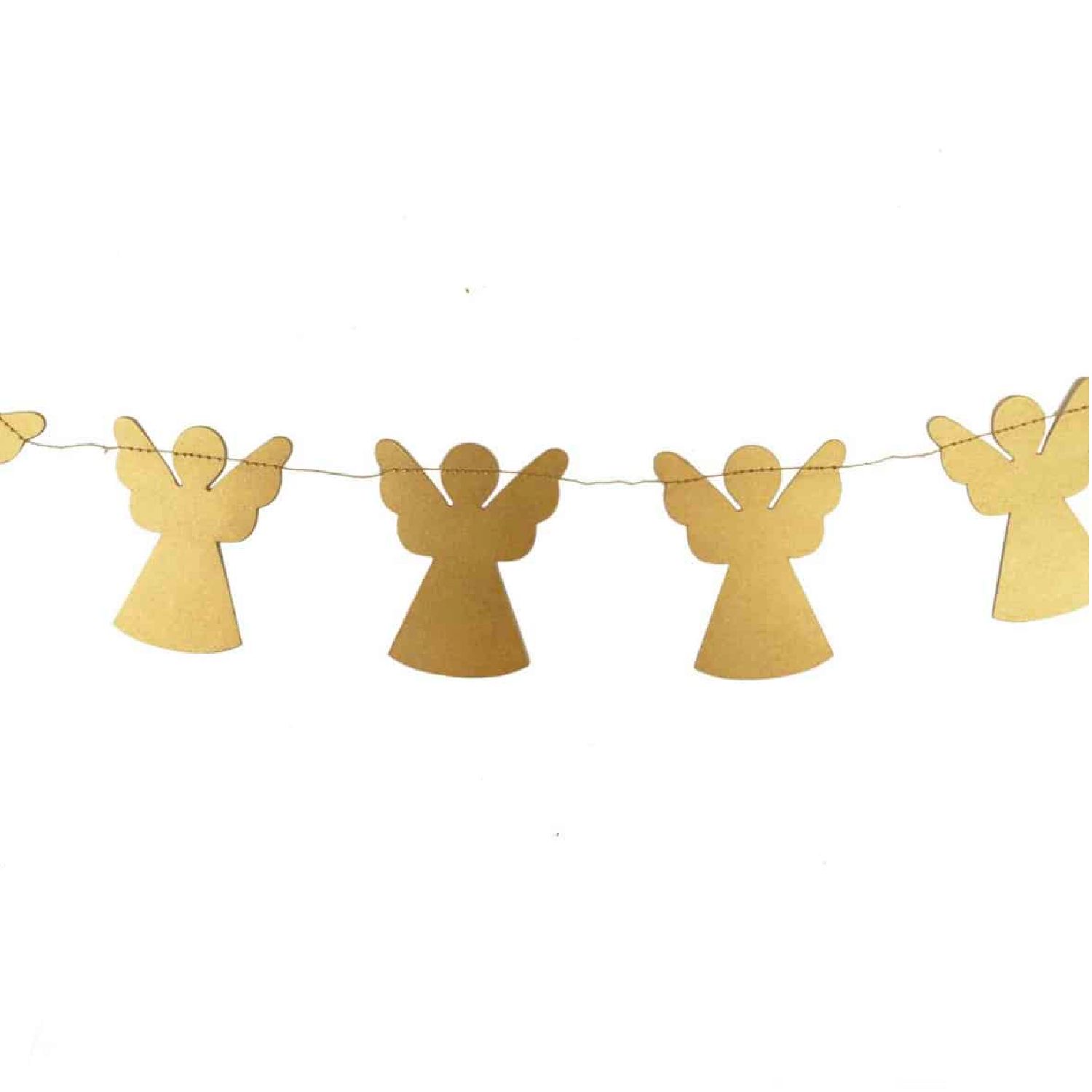 Deze papieren engelenslinger in goud, is een goed kado in de decembermaand. Het is gemaakt van stevig gerecycled papier, de slinger is 1 mrt lang. Hang hem feestelijk voor het raam of op de deur.