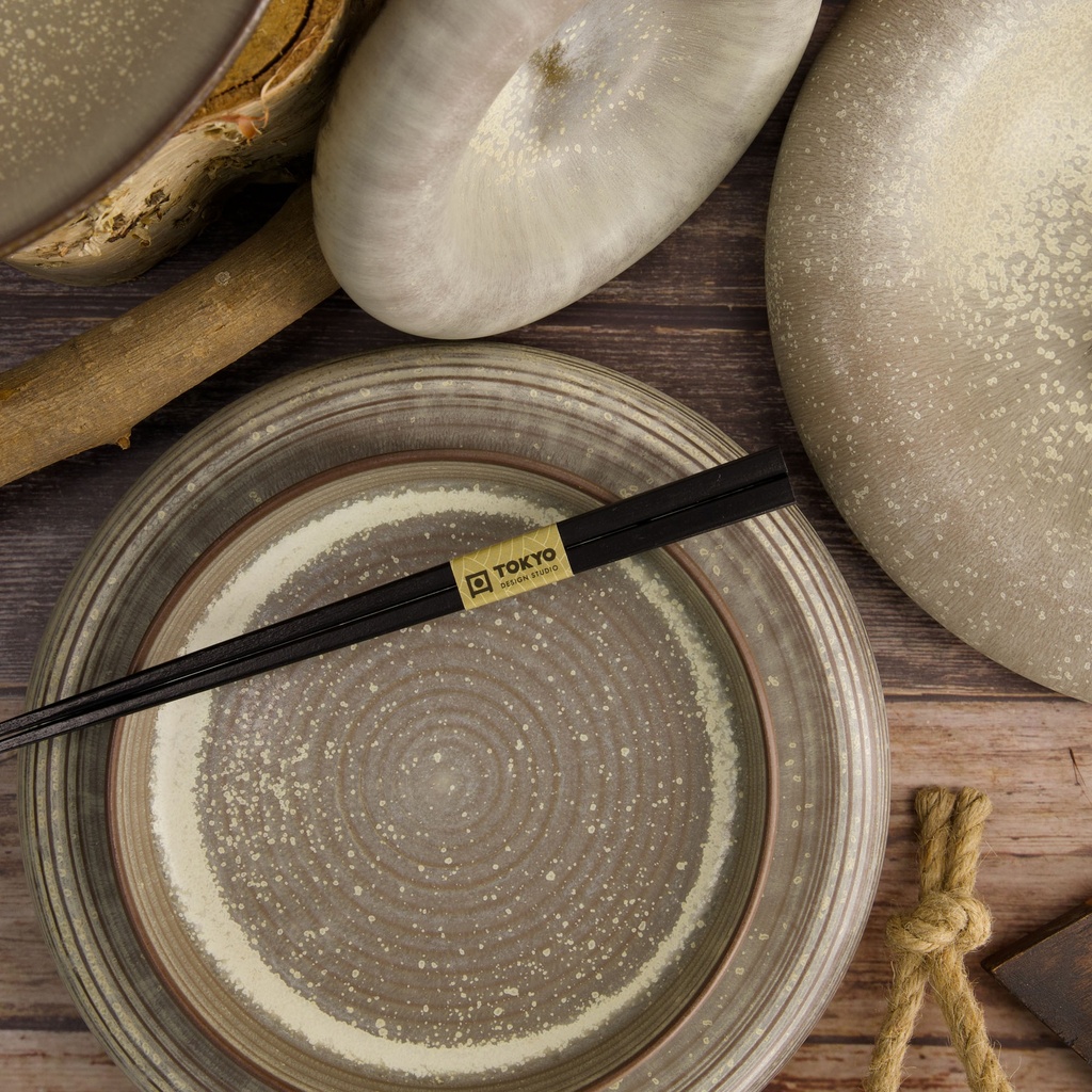 De Gold Sand Grey Flat Dish van Tokyo Design Studio heeft een diameter van 24 cm en is perfect voor het serveren van hoofdgerechten, salades of gedeelde maaltijden. Gemaakt van steengoed, heeft de schotel een elegante grijze kleur met een subtiel gouden randje, wat de schotel een luxe en verfijnde uitstraling geeft.