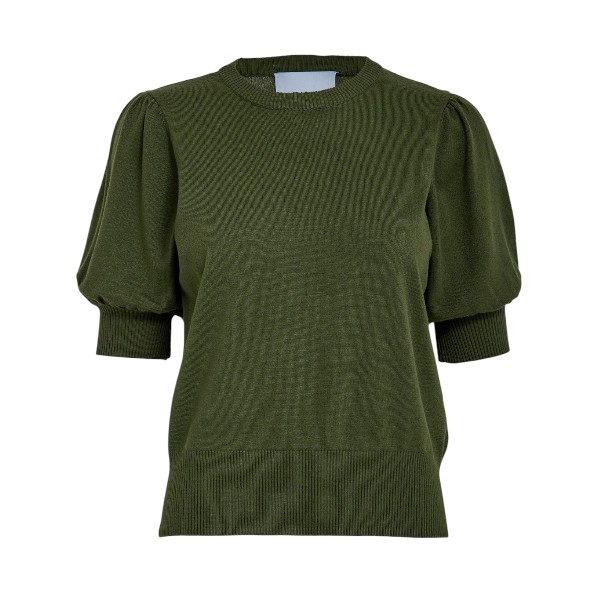 Het groene truitje met pofmouw de Liva Knit Tee in de kleur Rifle Green, van het Deense label Minus is het perfecte truitje voor iedere dag.