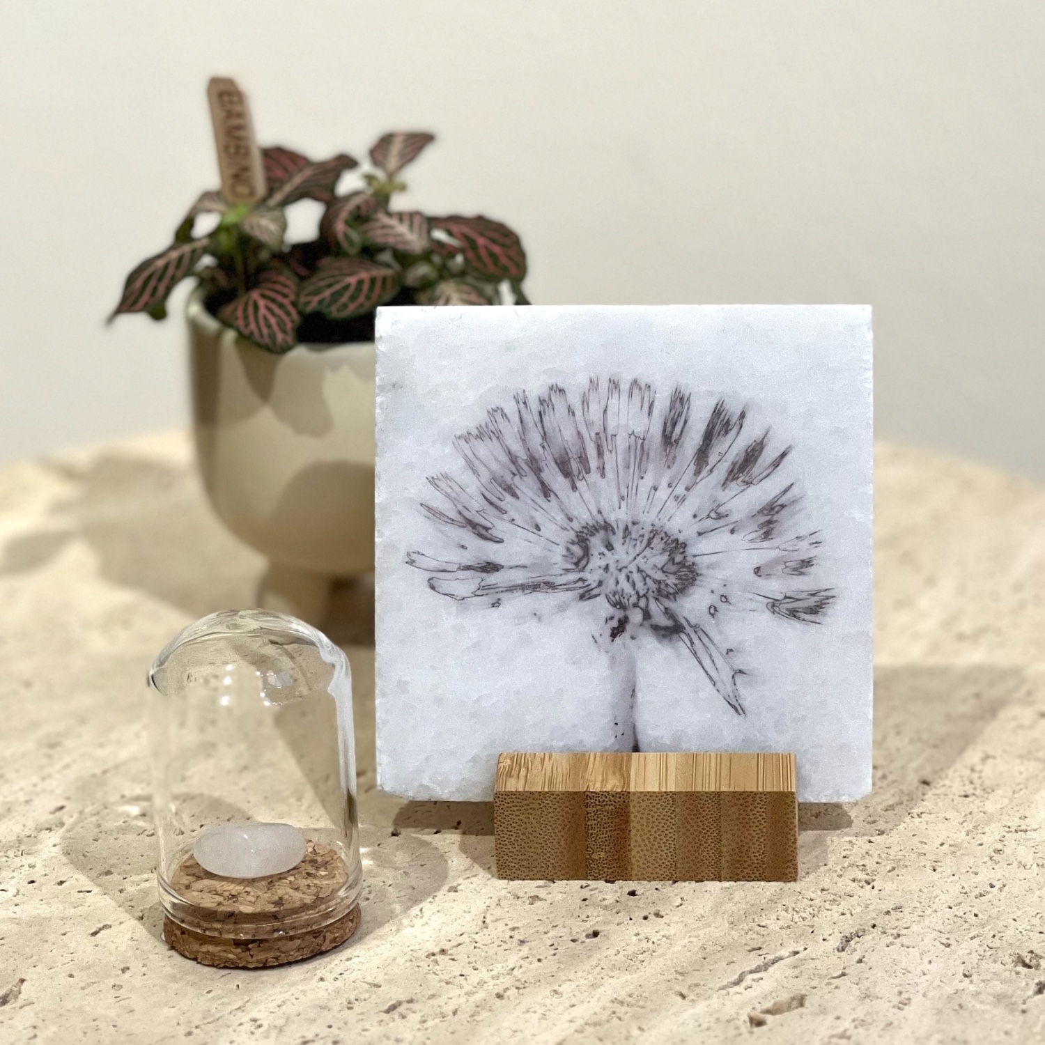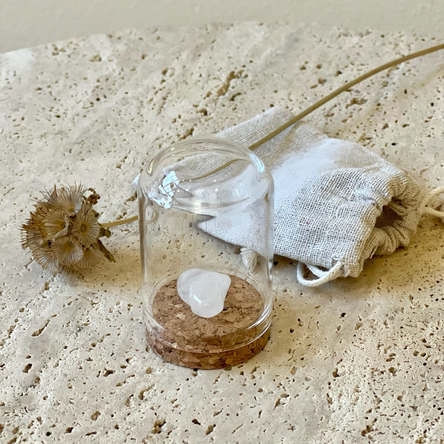 Dit prachtige herinneringsstolpje van Roosmarijn Knijnenburg is een stolpje waar je een waardevolle herinnering onder kan stoppen. Plaats onder het stolpje een dierbaar stukje stof, een plukje haar van jouw trouwe viervoeter of het mooiste sieraad van iemand die je zo mist. De stolp past perfect op de plek van het vaasje/kaarsje.