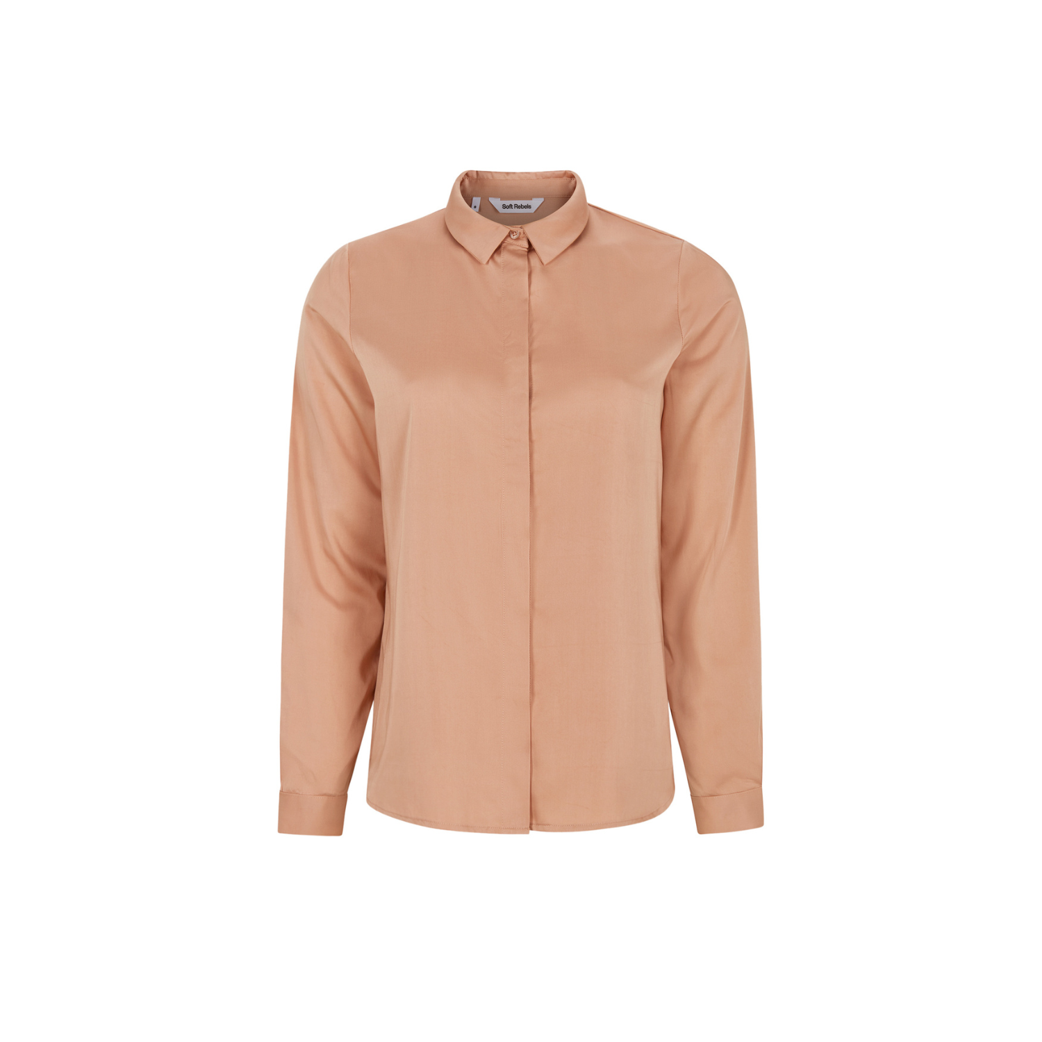Zalmroze blouse met lange bouwen die zachtheid en verfijning op en natuurlijke manier samenbrengt. Deze blouse van Soft Rebels heeft een ontspannen pasvorm en een heldere belijning, waardoor het ontwerp rustig oogt maar wel warmte uitstraalt. De klassieke kraag en doorlopende knoopsluiting zorgen voor een tijdloos silhouet.