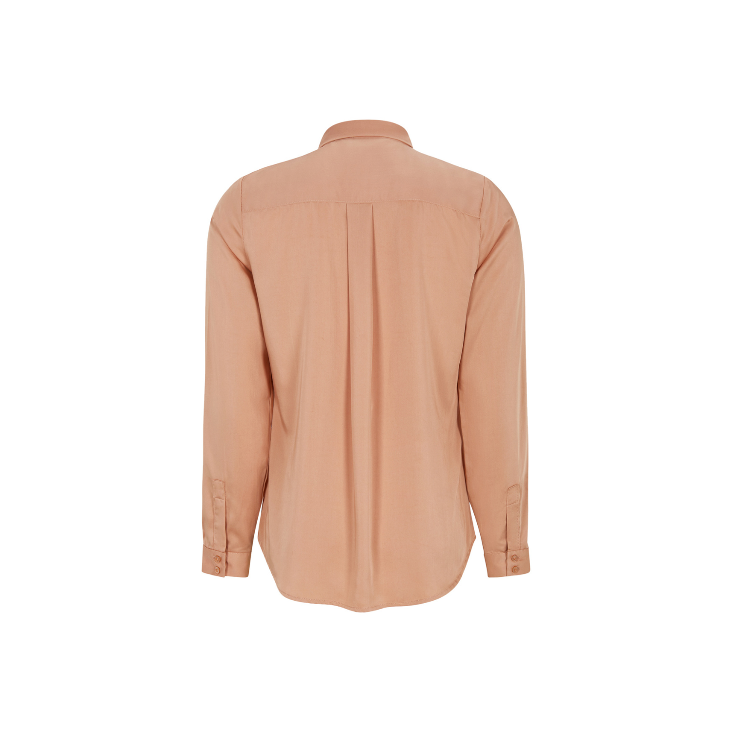 Door de minimalistische afwerking en de zachte kleur vormt deze zalmroze blouse met lange mouwen een veelzijdige basis in je garderobe.