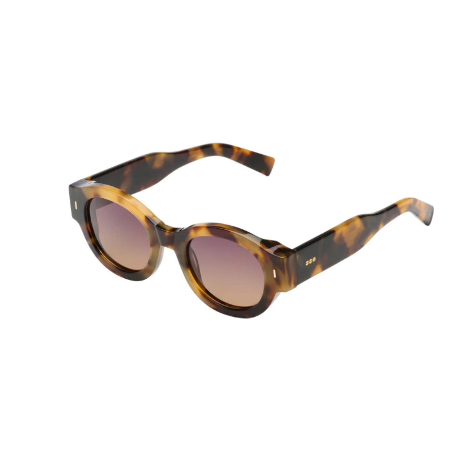 De bruine ronde zonnebril met tortoiseshell en glazen met kleurverloop, van Komono, is een tijdloze klassieker met een warme, verfijnde uitstraling. Het ronde montuur met een subtiel schildpadpatroon geeft deze zonnebril karakter en diepte, terwijl de zachte bruine tinten zorgen voor een natuurlijke en elegante look. Daardoor past dit model moeiteloos binnen een rustige, stijlvolle garderobe.