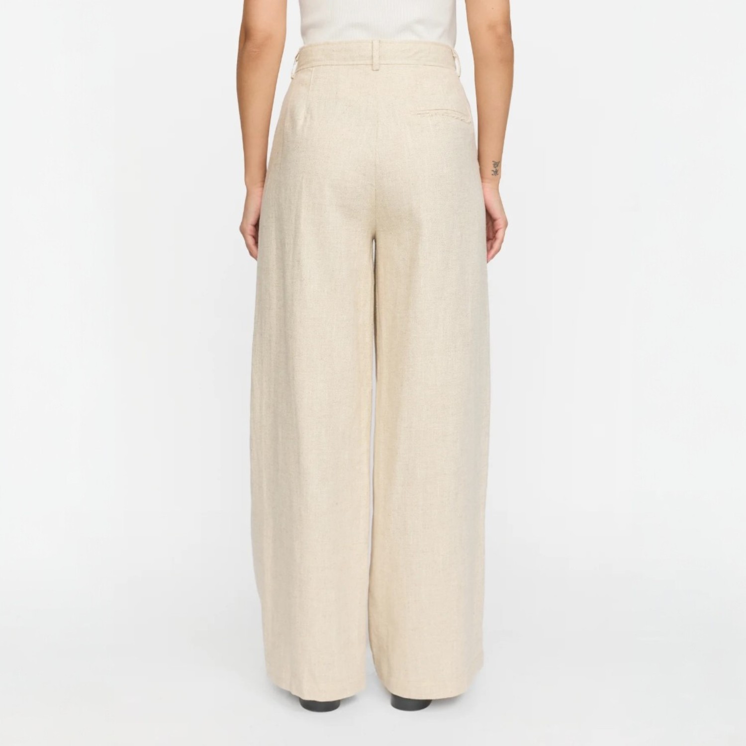 De Kendra Pant Ecru van Soft Rebels is een tijdloos stuk dat elegantie en comfort combineert. Het ontwerp met een wijde pijp zorgt voor een verfijnde, vloeiende uitstraling, terwijl de plooien en schuine zakken de broek een nette, op maat gemaakte afwerking geven. De ritssluiting wordt versterkt door een haak- en oogsluiting, met een binnenknop voor extra zekerheid. Een nep wereldzakje op de achterkant voegt een subtiel detail toe aan deze klassieke stijl.