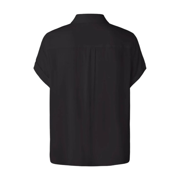 Het Majan Shirt in de kleur Black van Samsøe Samsøe is een stijlvolle blouse met korte mouwen, gemaakt van duurzame LENZING™ ECOVERO™ viscose. Het heeft een regular fit, een knoopsluiting aan de voorkant, en een klassieke overhemdkraag. De geplooide details bij de schouderpas voegen een speelse touch toe, net zoals de langere achterkant.