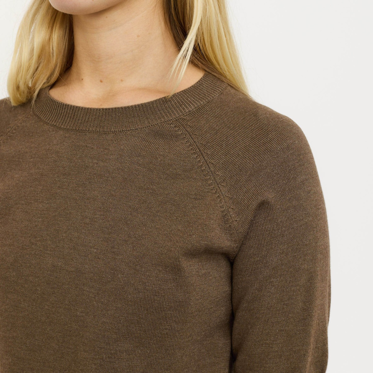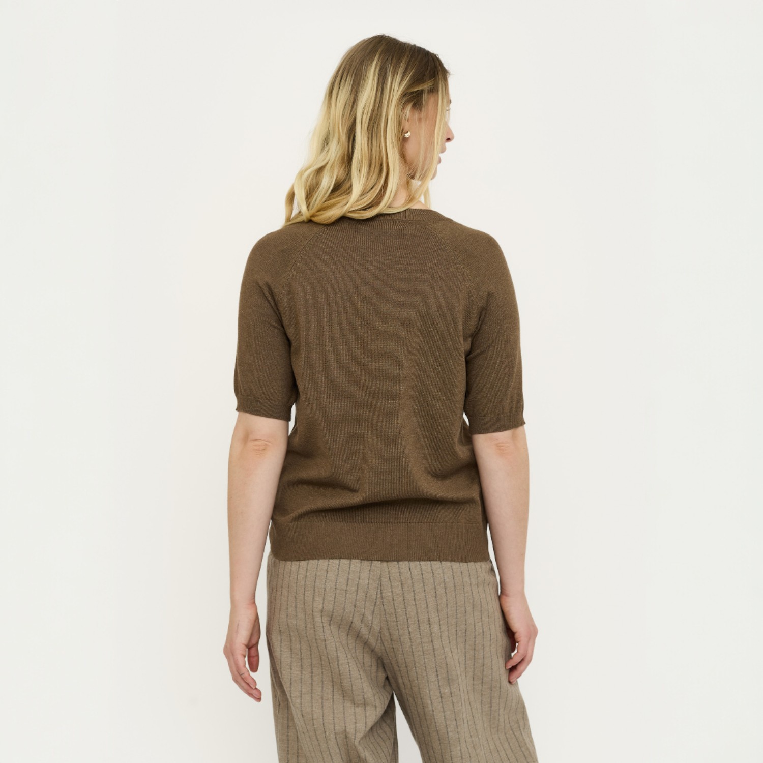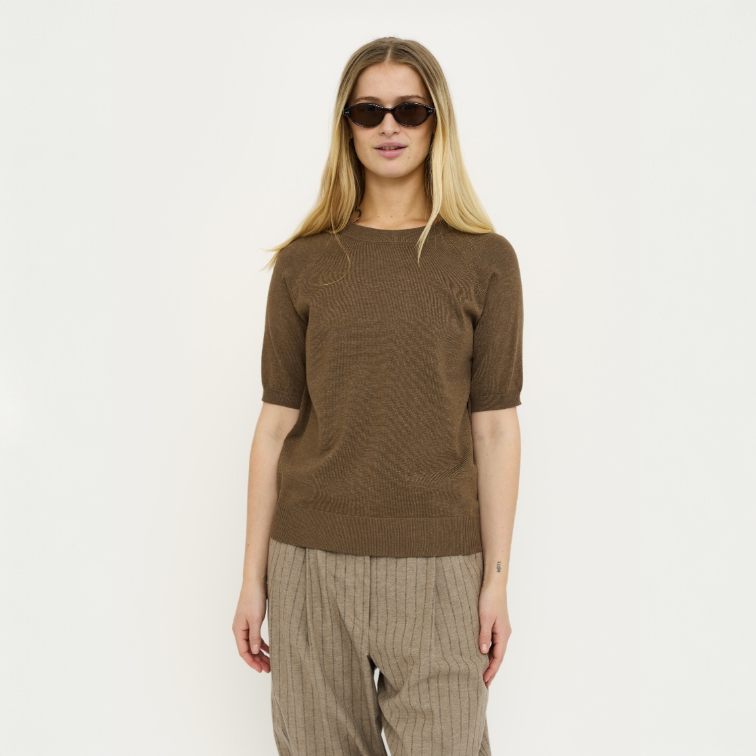 Waarom je de Marla Short Sleeve O-neck Knit Sepia Melange wilt hebben: