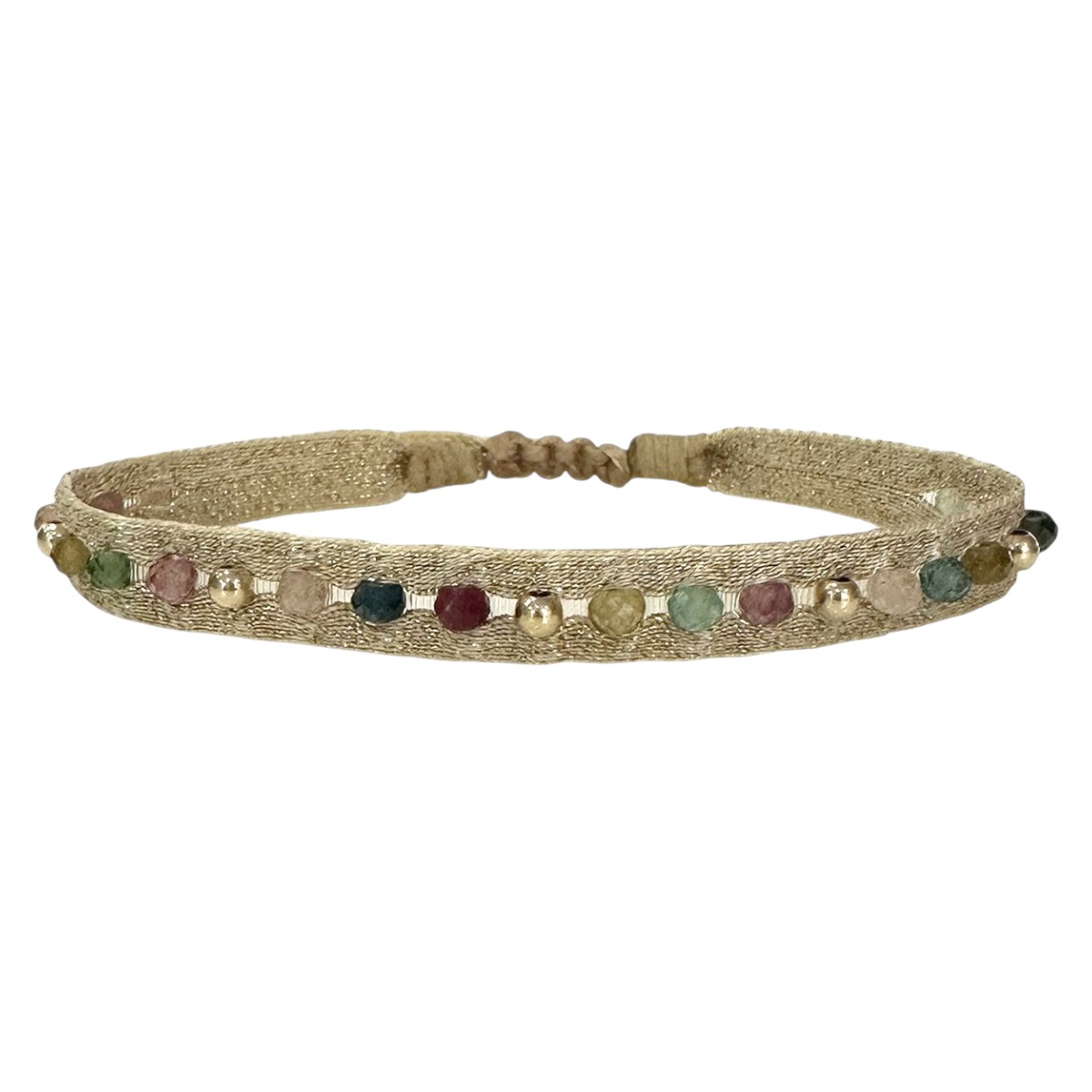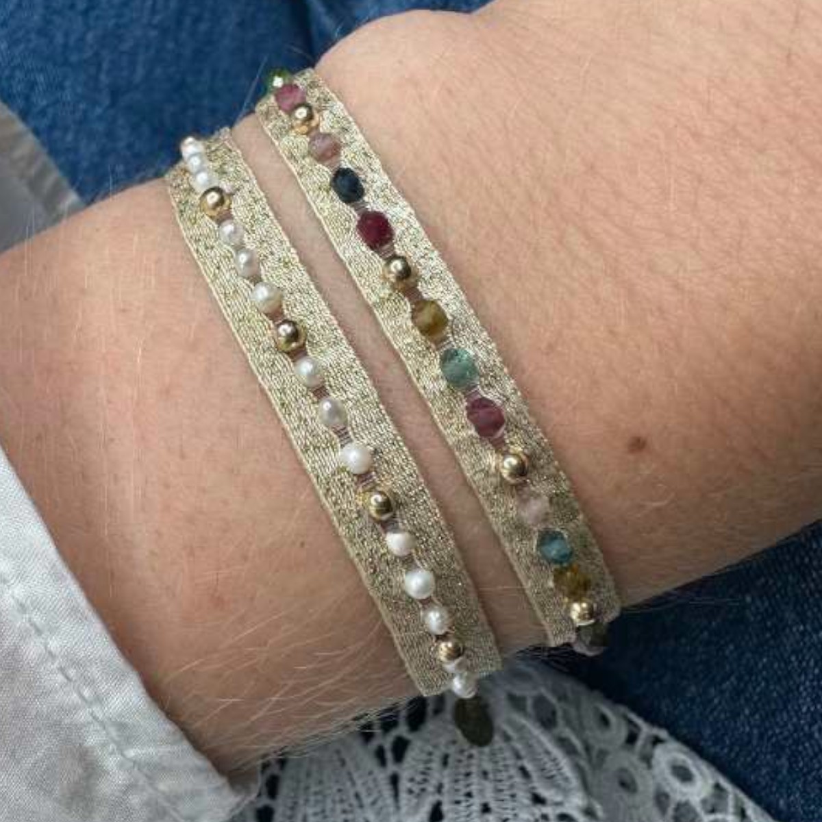 Handgemaakt in Colombia van gewaxed draad, gemengde halfedelstenen en 14k goldfilled kralen: de armbandjes van LeJu zijn subtiel, sterk en perfect voor elke dag. Het materiaal is van hoge kwaliteit en blijft lang mooi, zelfs als je ermee doucht, slaapt of de zee in duikt.