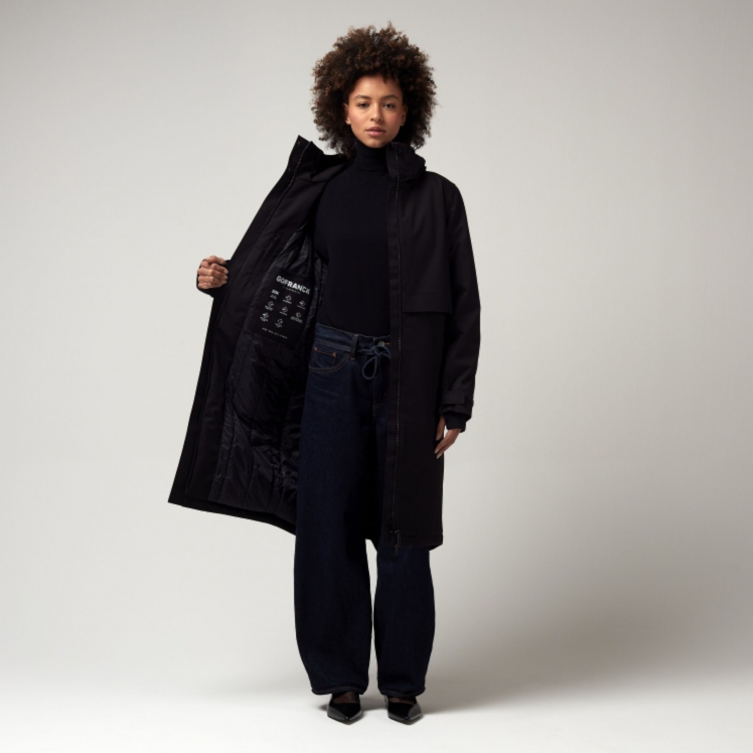 Een van de slimme details is de reflecterende zichtbaarheidsstrook: iedere GOFRANCK-jas is voorzien van een nauwelijks zichtbare paspelzak aan de achterkant, waarin de strip kan worden opgeborgen. Draag de strip buiten de zak wanneer extra zichtbaarheid essentieel is, bijvoorbeeld tijdens het fietsen, op weg naar het werk of tijdens avondwandelingen. Berg de strip gemakkelijk op wanneer deze niet nodig is.