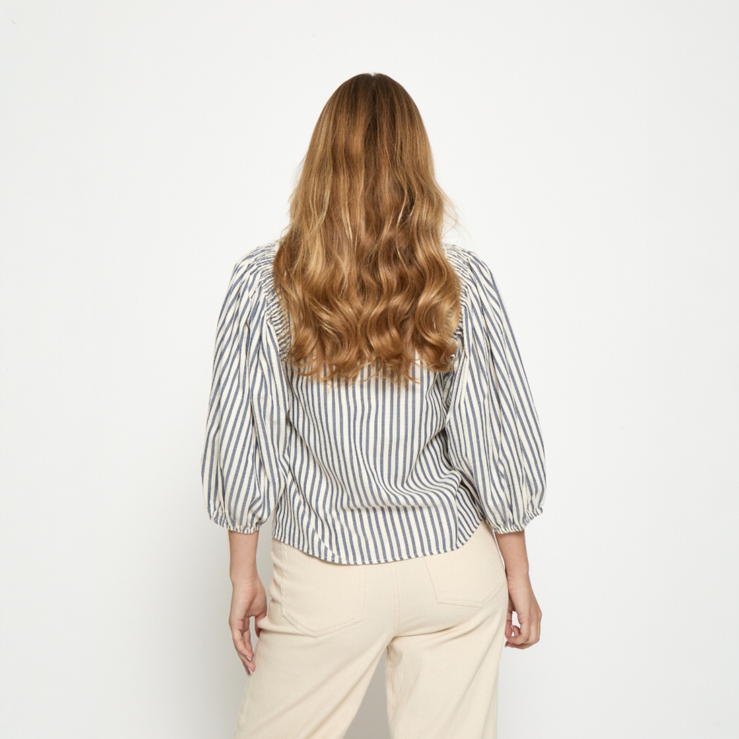 De Ninka Blouse laat zich eenvoudig combineren binnen verschillende outfits. Draag de blouse op een jeans voor een casual look of combineer met een pantalon of rok voor een meer geklede uitstraling. Het subtiele streepdessin maakt deze blouse makkelijk te combineren met neutrale tinten zoals wit, beige, grijs en zwart.