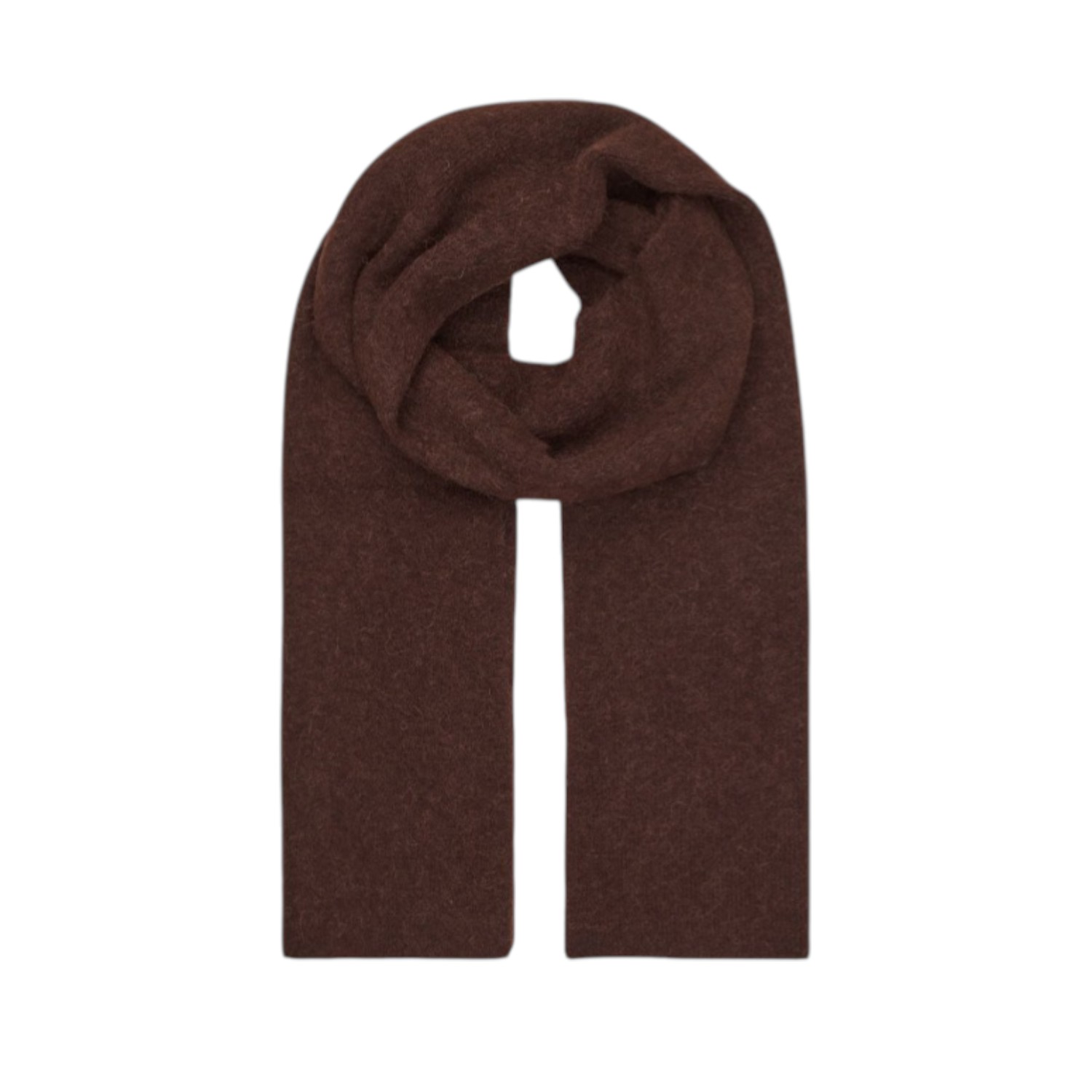 De Nor x Scarf in de kleur Black Coffee is een gebreide sjaal met een zachte structuur en een verfijnde, tijdloze uitstraling. Gemaakt van een hoogwaardige mix van natuurlijke en gerecyclede materialen, biedt deze sjaal comfortabele warmte en een luxe gevoel tijdens de koudere maanden.