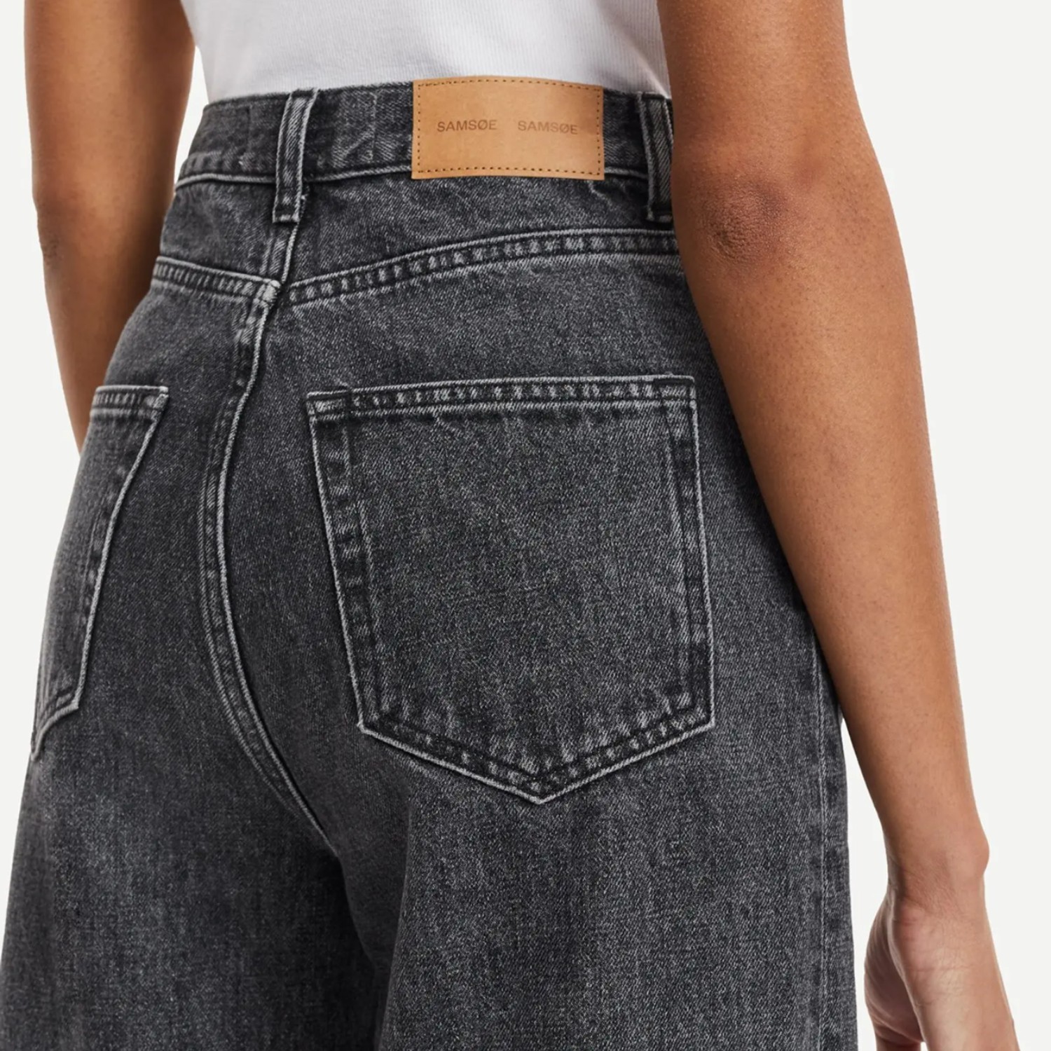 Een mooie jeans van Samsøe Samsøe in de kleur Northern Sky met hoge taille en wijde pijpen. De broek heeft een ritssluiting en riemlussen. De broek is in westernstijl met vijf zakken.