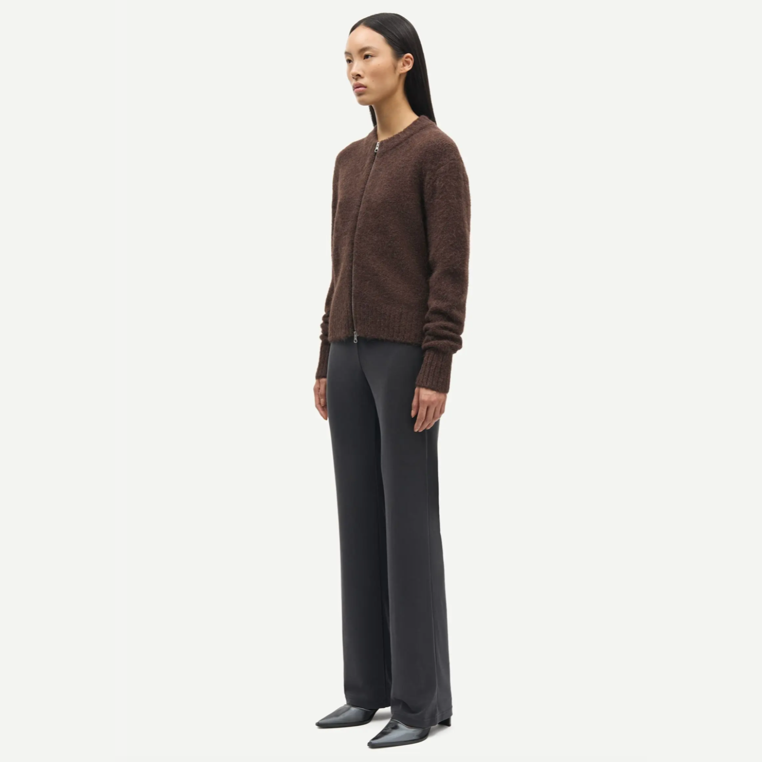 De bruine wolblend zip cardigan is een veelzijdig en tijdloos kledingstuk dat zowel comfort als klasse uitstraalt. Deze cardigan van Samsoe Samsoe heeft een subtiel gemêleerde Black Coffee-kleur en voelt door de zachte wolblend warm en luxe aan. Bovendien maakt de doorlopende ritssluiting het ontwerp modern en praktisch, waardoor je hem eenvoudig kunt stylen over een basisshirt of een lichte blouse.