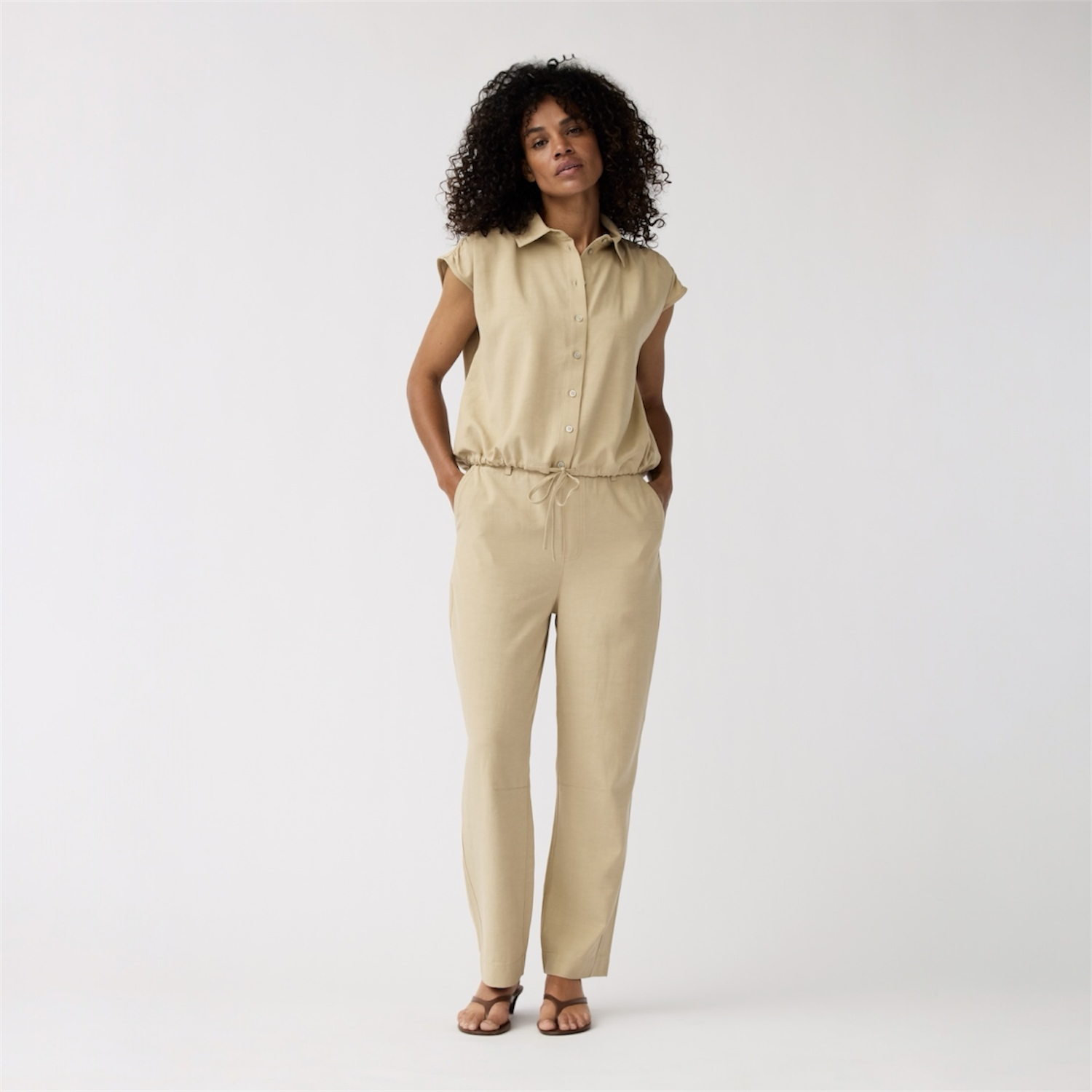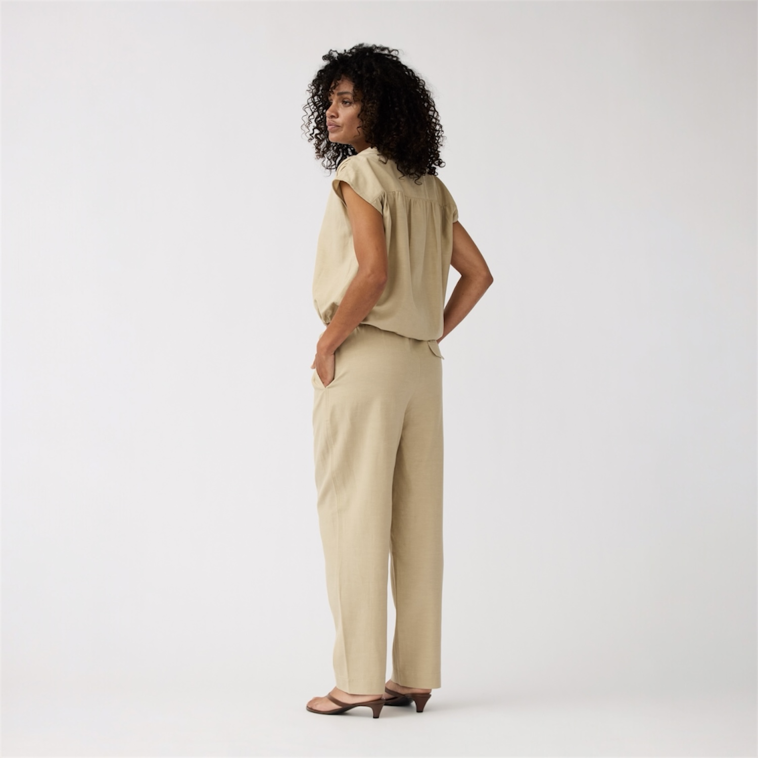 Dankzij de ademende linnen look is deze zandkleurige broek dames bijzonder geschikt voor warmere dagen, maar ook mooi te dragen in laagjes tijdens het voor- en najaar. Kortom, een broek die je keer op keer uit de kast pakt.