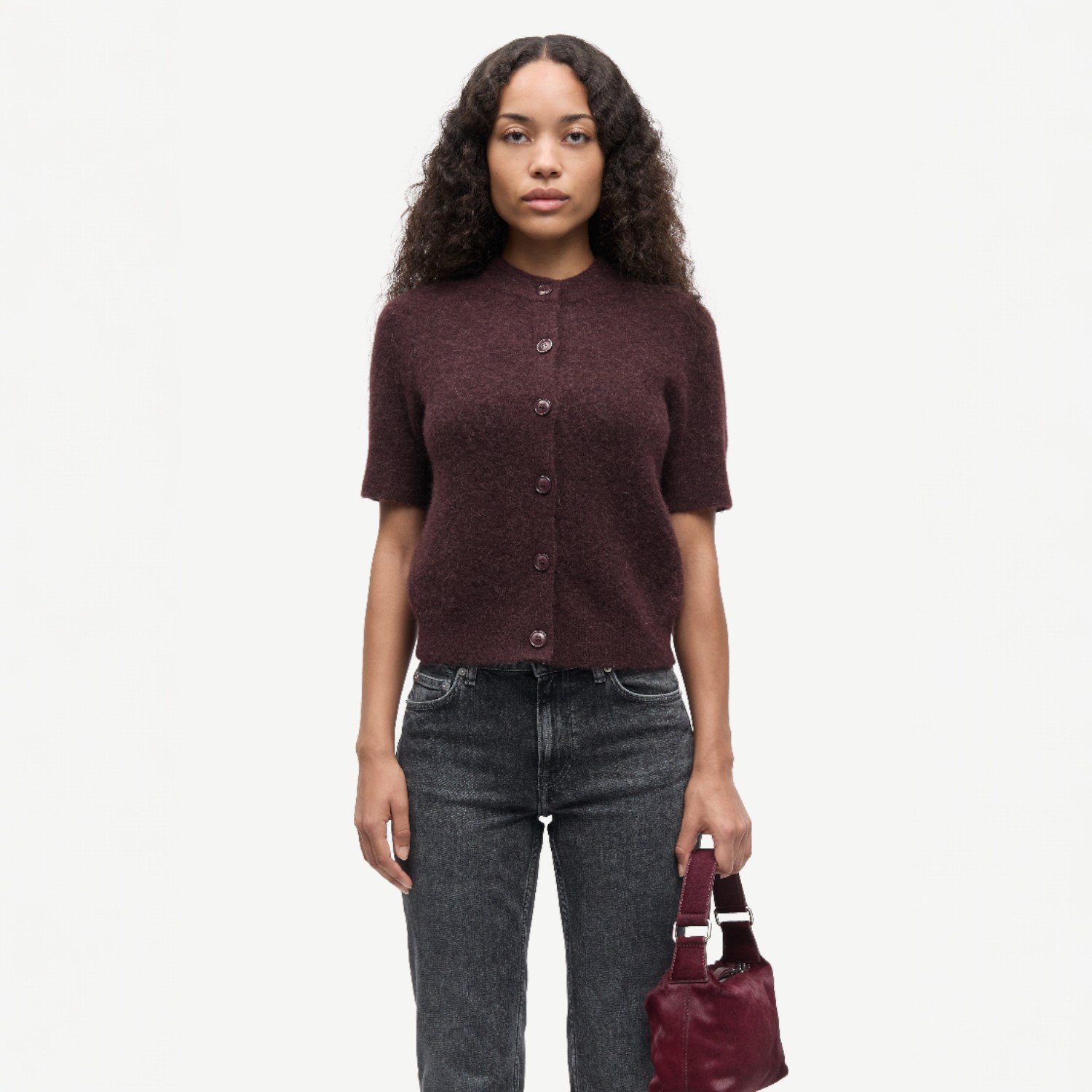 De Sanoura SS Cardigan Fudge van Samsøe Samsøe is een stijlvolle bruine dames cardigan met korte mouwen en een moderne, minimalistische uitstraling. De warme Fudge-kleur voegt elegantie toe aan elke outfit, terwijl de zachte stof zorgt voor optimaal draagcomfort.