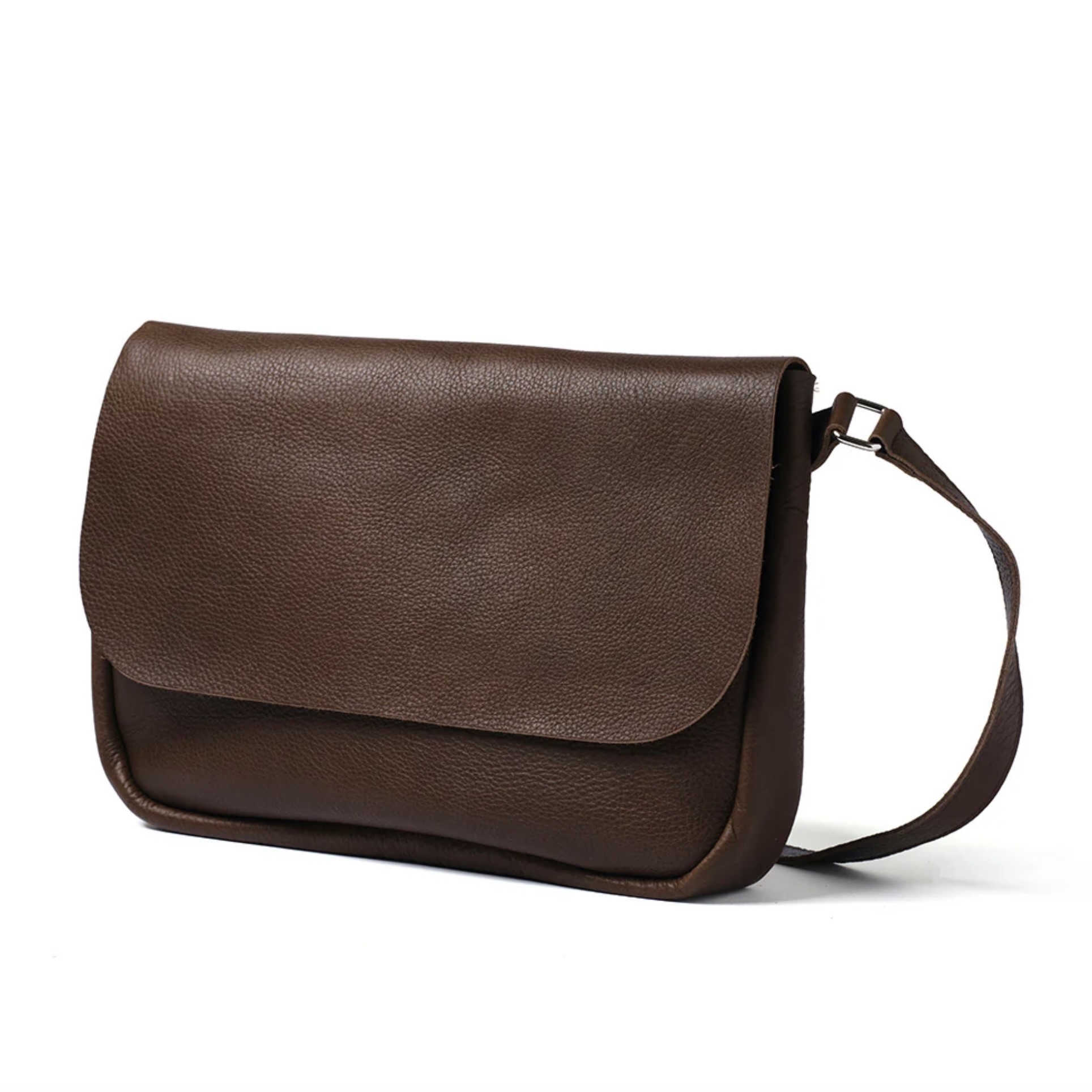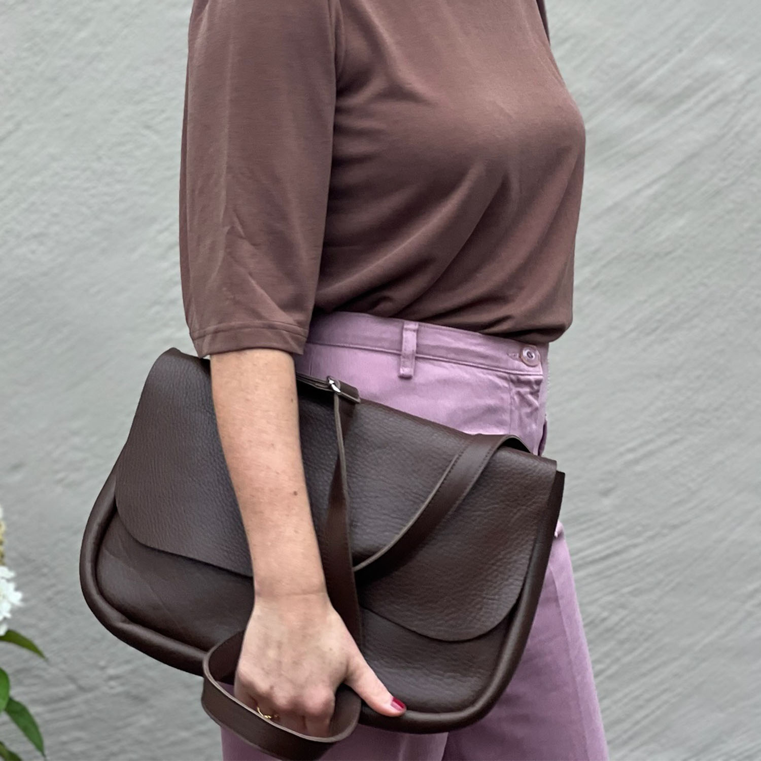 Het extra brede voorvak biedt ruimte aan een notebook of losse papieren. Een grote klep met klassieke afgeronde hoeken sluit de tas stijlvol af.
