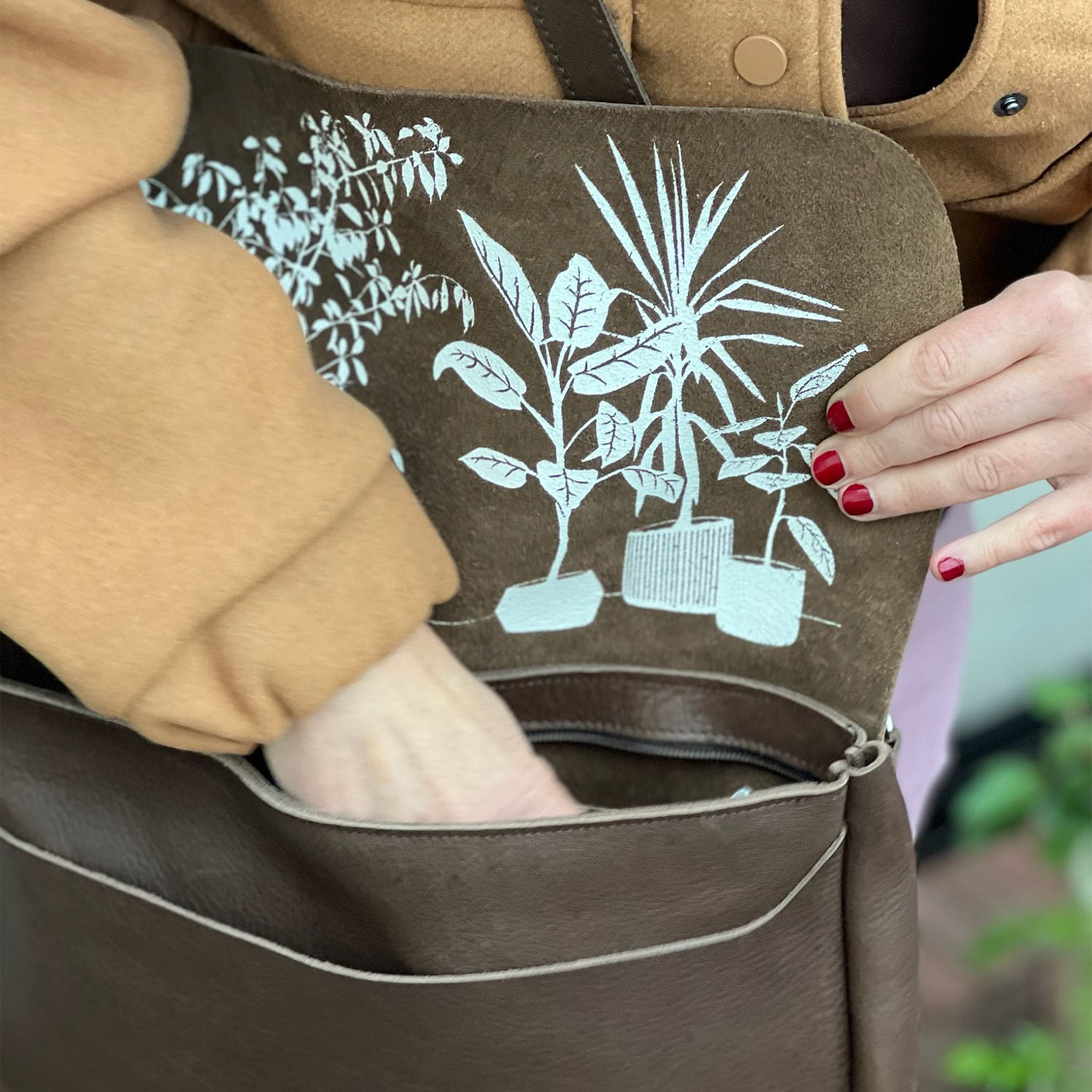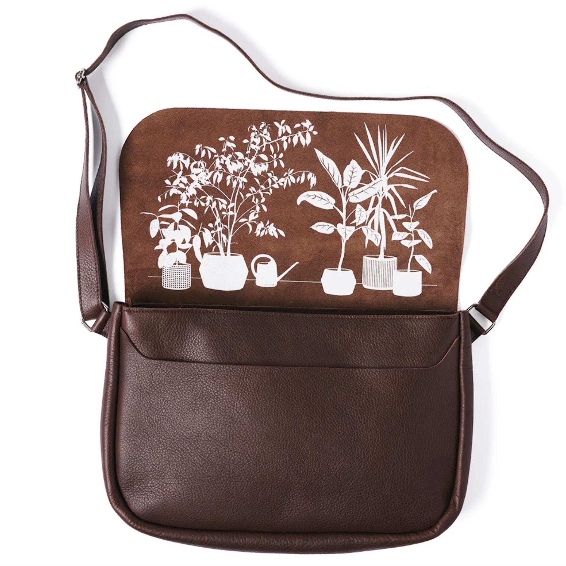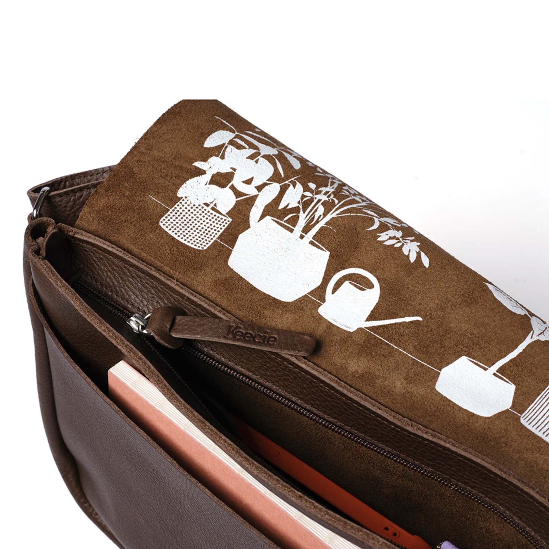De Schoudertas Plant Sitter in de kleur Dark Brown, van het label Keecie, is een elegante en compacte werktas. Of je nu onderweg bent naar kantoor of een belangrijke vergadering hebt: de vrolijke kamerplantenprint aan de binnenkant geeft je extra zuurstof om je dag door te komen!