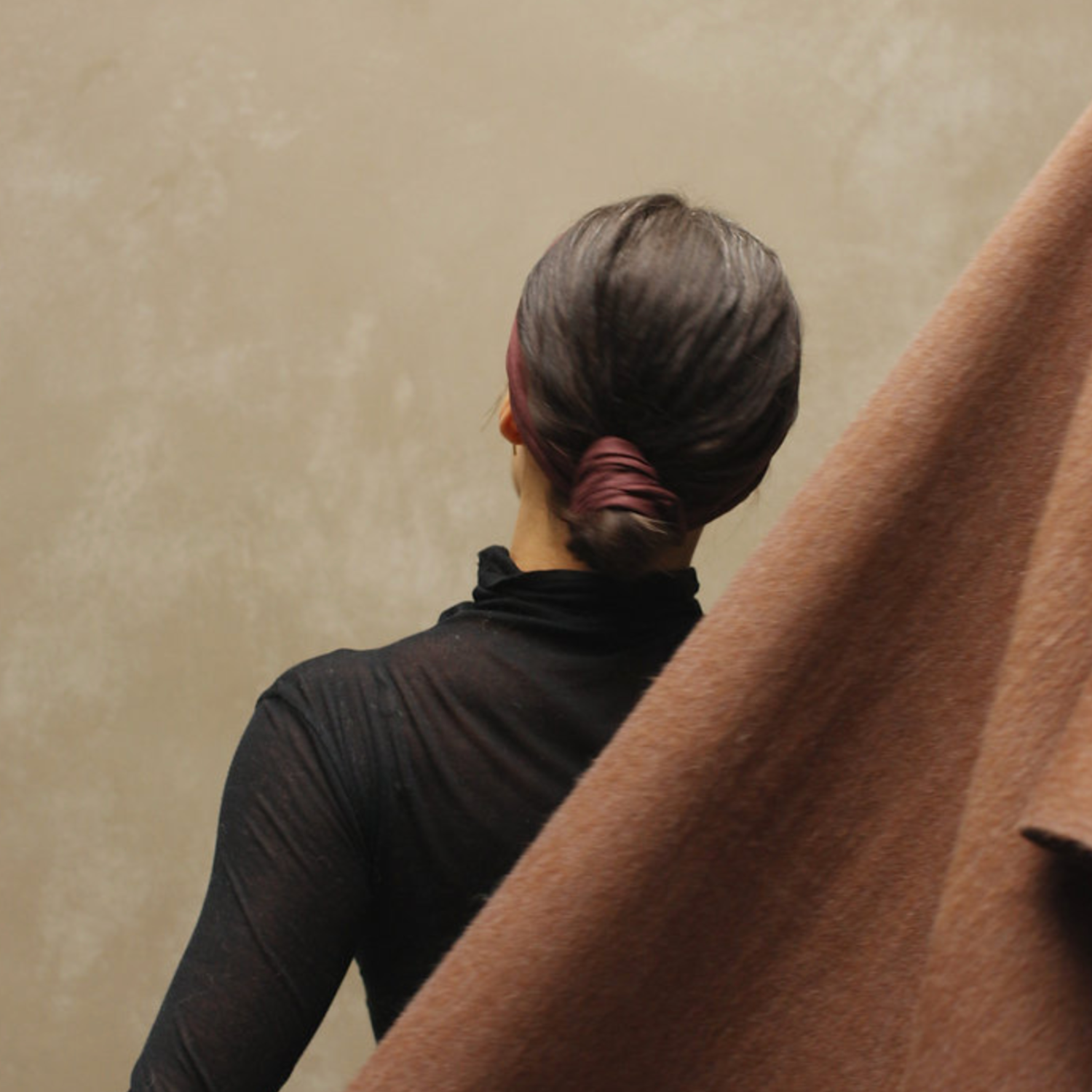 Bovendien laat de kleur Mahogany zich moeiteloos combineren met neutrale tinten zoals crème, zand en zwart, maar ook met warme kleuren als roest en donkerbruin. Het kleine, subtiele label is zorgvuldig geplaatst en versterkt het minimalistische karakter zonder op te vallen. Dit maakt de scrunchie niet alleen functioneel, maar ook esthetisch prettig om te dragen: in het haar of losjes om de pols.