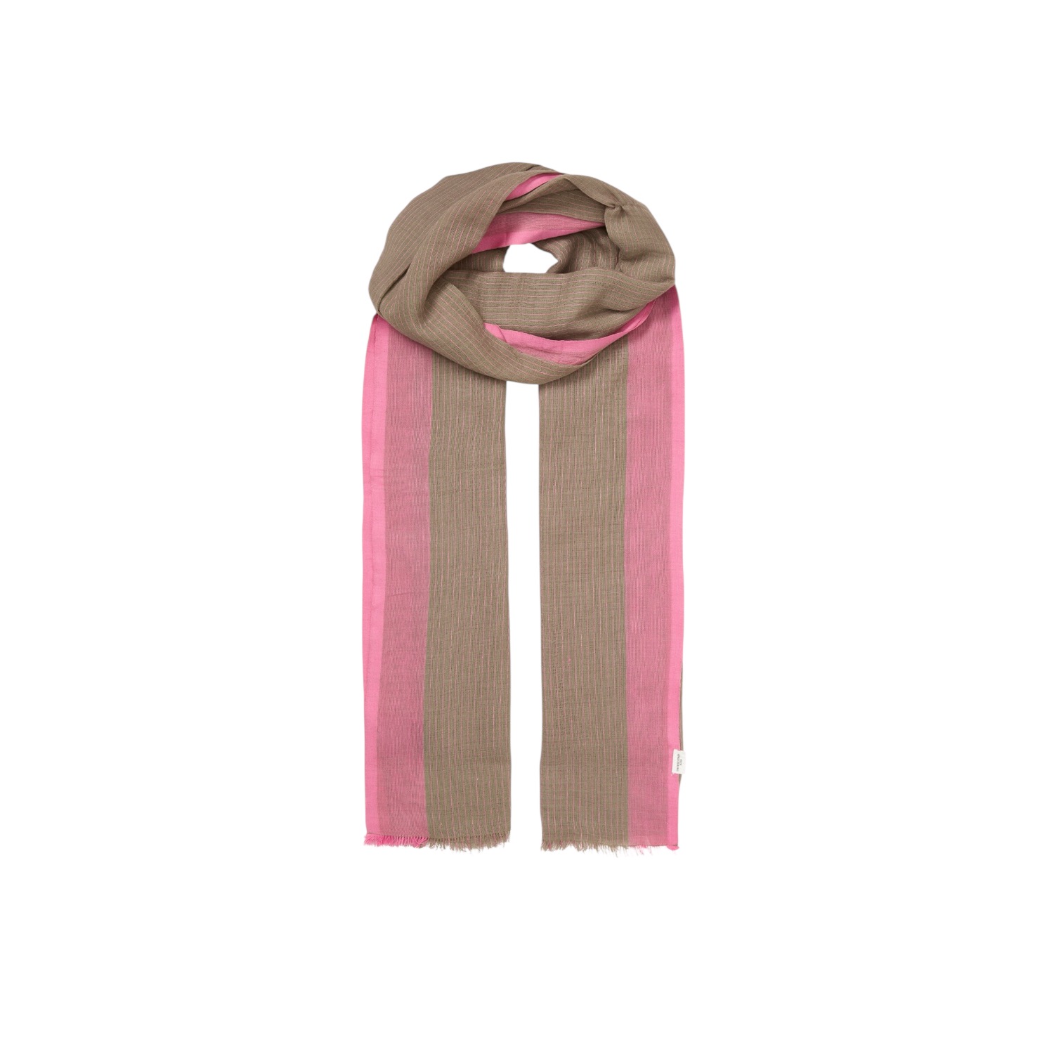 Stripy Cowea Scarf in de kleur Carmine Pink, van het Deense label Becksöndergaard, is een fijne, stijlvolle sjaal van 100% katoen. Het ontwerp bestaat uit een verfijnde lichtbruine basis en een strook oudroze.