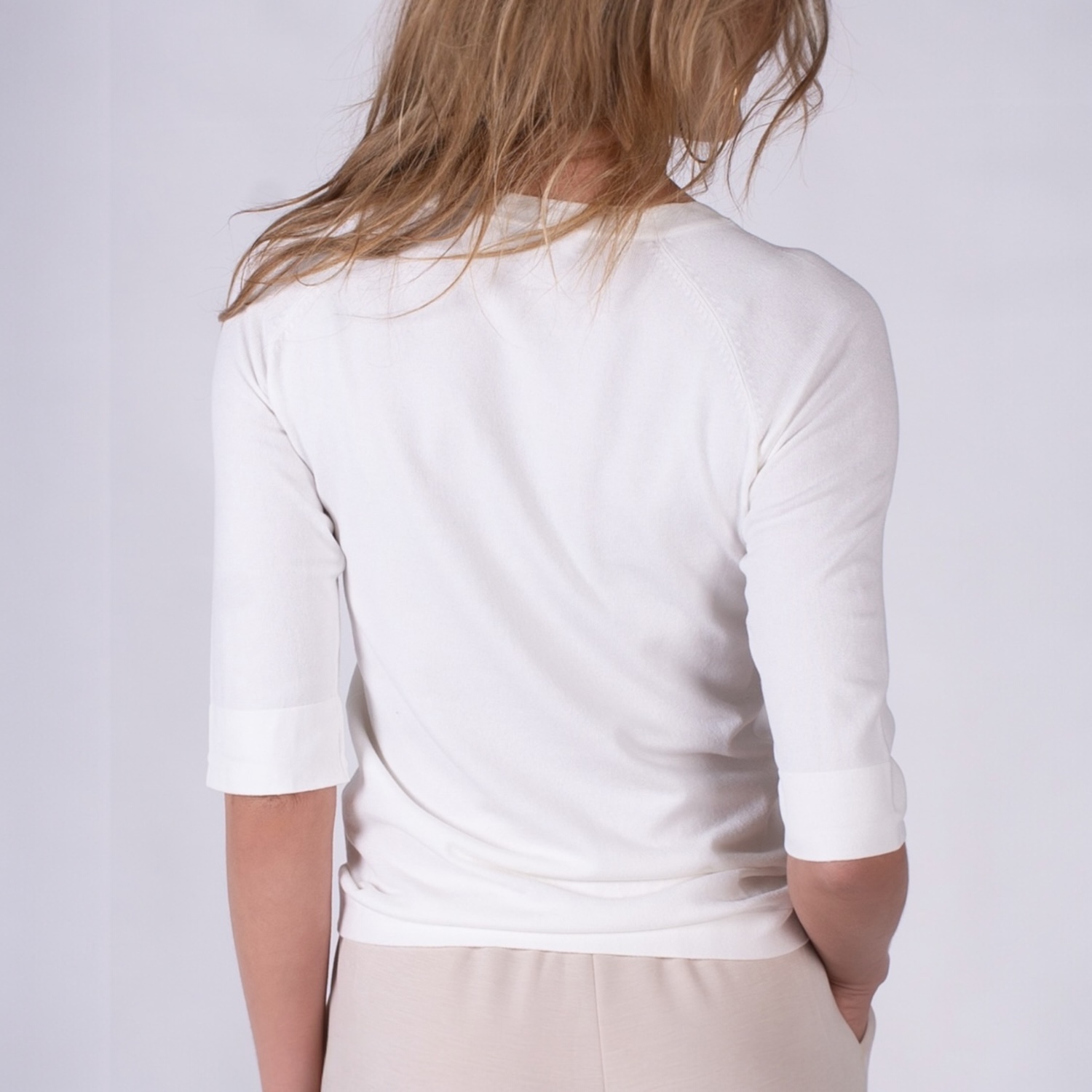 Deze Moscow, viscose shirts van The Clothed zijn prachtige basics die eigenlijk niet in je kledingkast mogen ontbreken. De gebreide shirts met raglanmouw hebben een ultra vrouwelijke snit, een iets langer mouwtje tot op de elleboog, een subtiele boothals en ze zijn ook van onderen niet te kort. Het dikkere breisel is fijn rekbaar en draagt dan ook erg comfortabel.